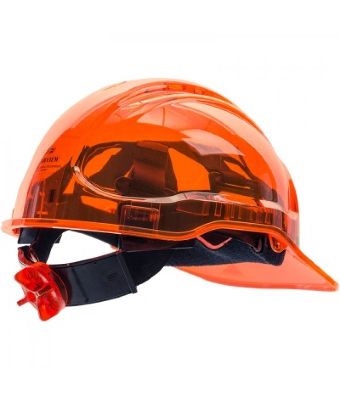 Features ● Portwest exclusive design and patented model ● Translucent shell to see through peak and sides ● UV 400 stabilised ● Vented helmet shell to allow air circulation cooling the wearer's head ● 6-point textile suspension harness for enhanced wearing comfort and safety ● Size adjustable headband via wheel ratchet system ● Extra strong yet ultra light weight Polycarbonate shell ● Soft foam sweat band included ● Compatible accessories available ● Available in multiple colourways ● Up to 7 years lifetime from manufacturing date (as long as undamaged) ..